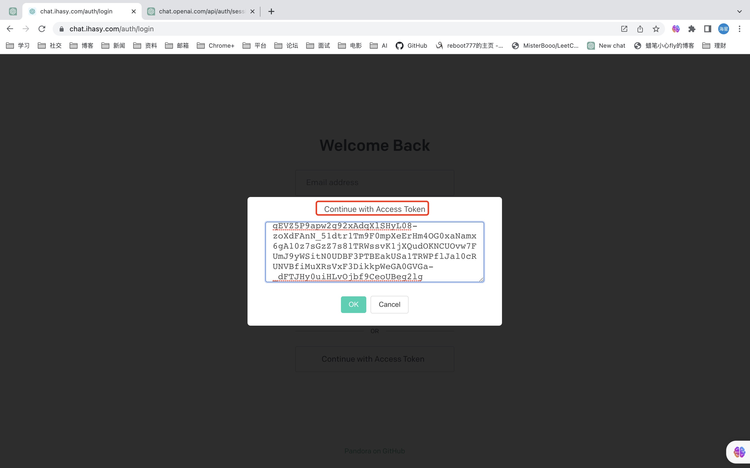 - 通过第三方登录的可以访问https://chat.openai.com/api/auth/session 找到